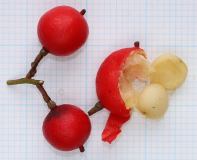 | ・果実は液果。直径6〜7mmの球形で、10〜11月に赤く熟す。 |