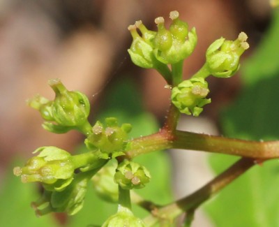 ・枝先に円錐花序を出し、淡黄緑色の小さな花をつける。