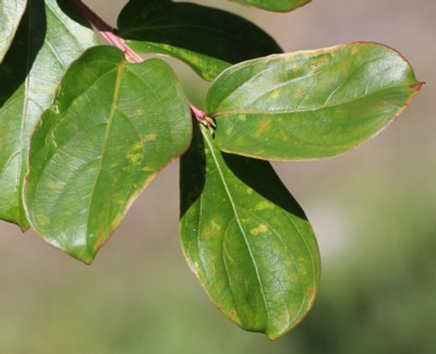 ・葉は対生、または互生。長さ2.5〜5cm、幅2〜3cmの倒卵状楕円形。先は鈍く、ふちは全縁、両面ともほぼ無毛。