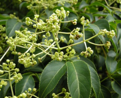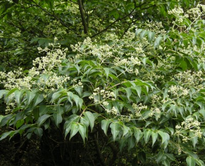 | ・本年枝の先に長さ15〜20cmの円錐花序をだし、黄緑色の花を多数つける。 |