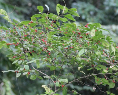 | ・果実は核果。直径約5mmの球形で9〜10月に赤く熟す。 |