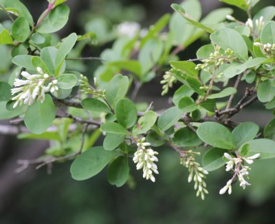 ・新枝の先に長さ2~4cmの総状花序を出し、白い花を多数つける。