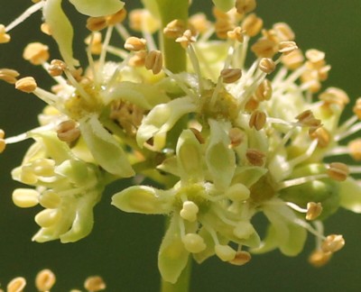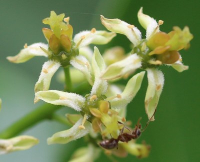 | ・枝先に長さ10〜20cmの円錐花序を出し、緑白色の小さな花を多数つける。 |