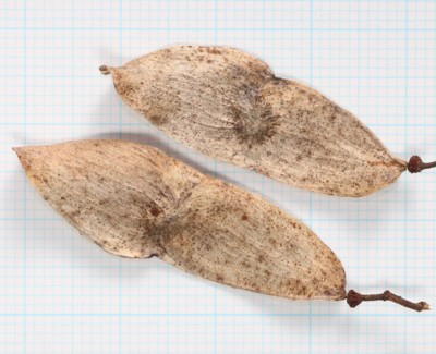 ・分果は長さ4〜4.5cmの狭長楕円形で、中央に直径5mmほどの扁平な種子がある。