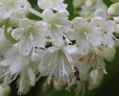 ・枝先から総状花序を数個出し、白色の花を多数つける。花弁は5個で長さ6〜7mmの長楕円形。雄しべは10個で花弁より長い、雌しべは1個。