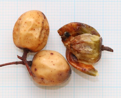 | ・果実は核果。長さ1.5〜2cmの楕円形で10〜12月に黄褐色に熟す。 |