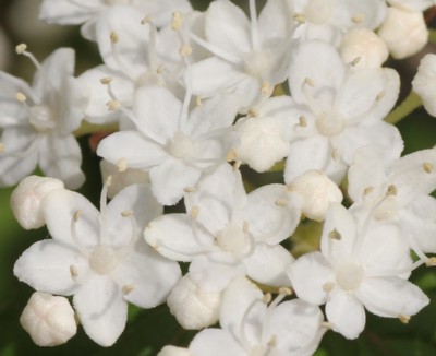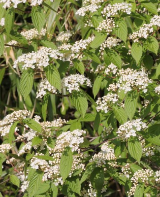 ・枝先に散房花序を出し、白色で直径約5mmの花を多数つける。