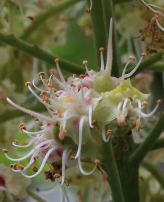 | ・一つの花序には雄花と両性花が混じり、ほとんどが雄花で両性花は花序の下部につく。 |