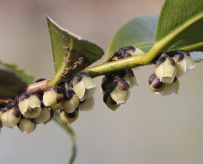 ・雌雄異株。花は直径5〜6mmの鐘形または壺形。基部はわずかに合着する。