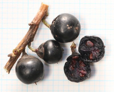 | ・果実は液果。直径4〜6mmの球形で10〜11月に紫黒色に熟す。 |