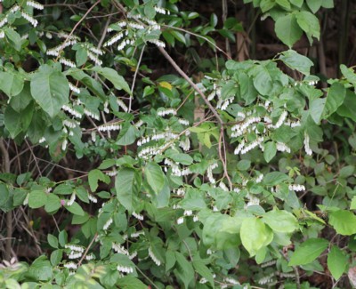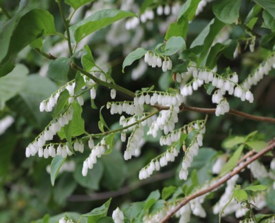 ・前年枝の葉腋から総状花序を出し、白色の花を多数つける。
