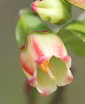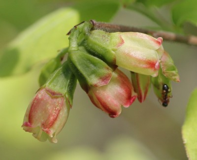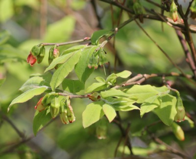 | ・前年枝の葉腋に赤みを帯びた黄緑色の花を2〜3個、下向きにつける。 |