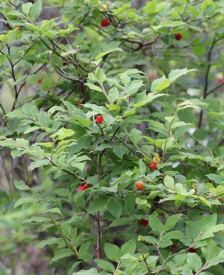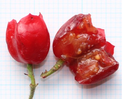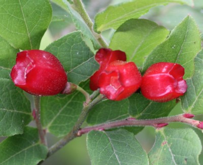 | ・果実は液果。直径7〜8mmの卵状球形で5個の稜がある。6〜9月に赤く熟す。 |