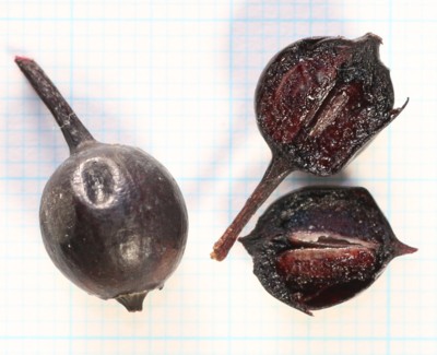 | ・種子は2〜5個。長さ6〜7mmの歪んだ長楕円形。背面に太い縦の稜がある。 |