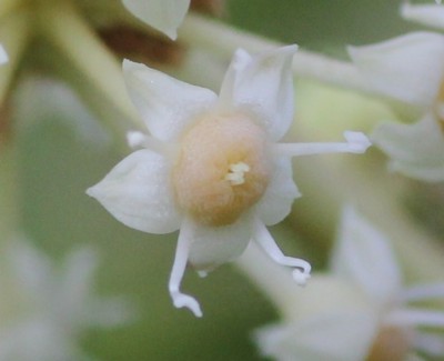 | ・花弁は5個、卵形で長さ3〜4mm。雄しべは5個、葯は白色。花柱は5個。 |