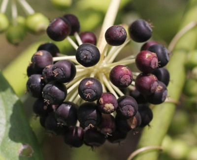 | ・果実は液果、直径7〜10mmの扁球形で、翌年の4〜5月に赤紫褐色に熟す。 |