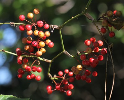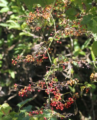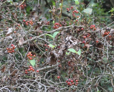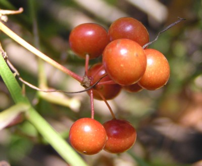 | ・果実は液果。直径7〜9mmの球形で、10〜11月頃に朱赤色に熟す。 |