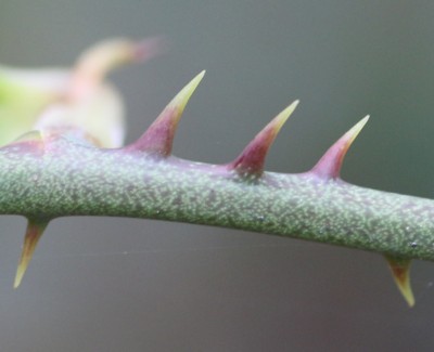 ・枝に鉤状の棘があり、他の植物に絡んで長さ3mほどになる。