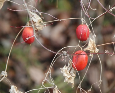 | ・果実が赤くならない「キカラスウリ」も同様に利用でき、根からデンプンを採取したものを天瓜紛(てんかふん)と言い、あせもの薬になる。 |