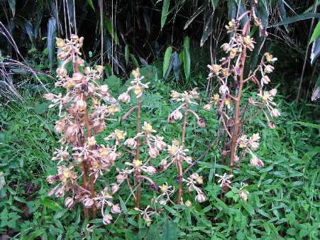 ・山野の林や笹藪などに生える無葉蘭で、きのこのナラタケと共生している。秋に赤く熟した果実を採って天日乾燥する。