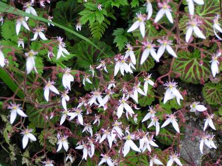 | ・低地の湿った所や岩場に生えている。漢名の「虎耳草」は、葉の形が虎の耳を思わせることに由来する。山菜・採取方法はこちらへ。 |