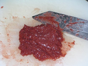 ・梅干の種を取り除いて包丁で細かくたたき、調味料と合わせなめらかに溶き梅だれを作る。