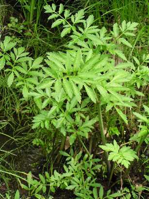 ・葉は羽状複葉で、高さは1m程に成長する。ここまで成長すると、間違って摘むことはまずない。
