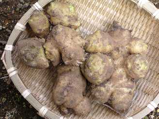 ・茎が枯れてから掘ると大きな芋が採れる。