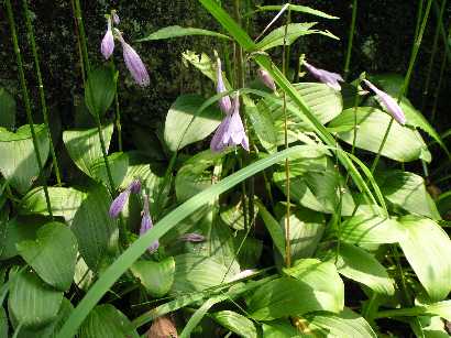 ・花茎は直立し、高さ30〜40センチ。花は数個〜10個程度、淡紫色で紫いろのすじがある。