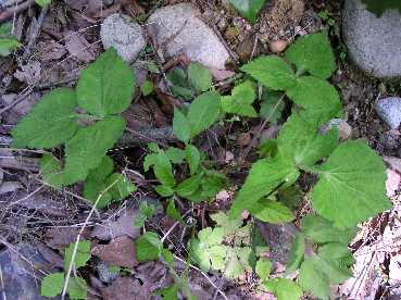・葉は名の通り、先端は3枚の小葉に分かれている。柔らかい葉や花茎を利用する。