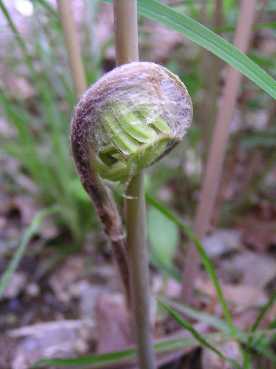 ・ゼンマイの名は良く知られているが、新芽以外はあまり知られていない。褐色のものは、胞子体(左写真)。