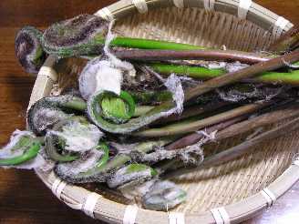 | ・栄養葉と胞子葉があり、食べるのは栄養葉。若芽の綿毛を取りあくを抜く。 |