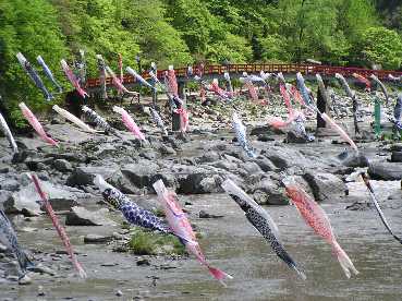 ・新緑の季節も良い。また、4月下旬頃からは、巴川に鯉のぼりが架けられる。